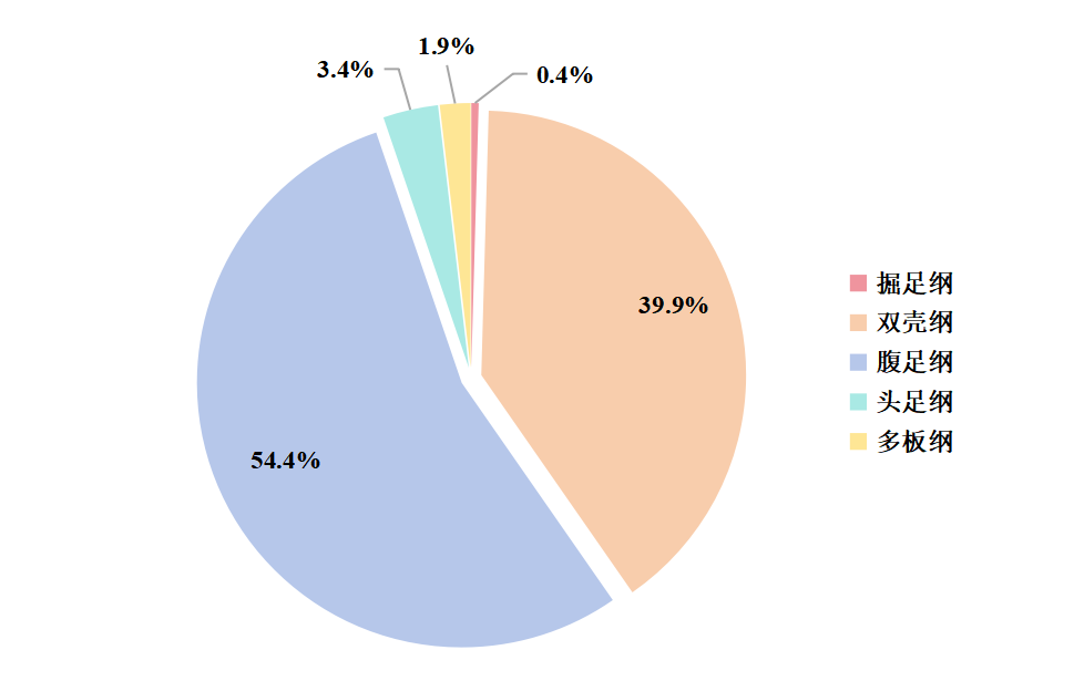 据本研究团队统计,海南省目前已有研究记录的贝类涵盖了 5 个纲、185 科、1128 种。